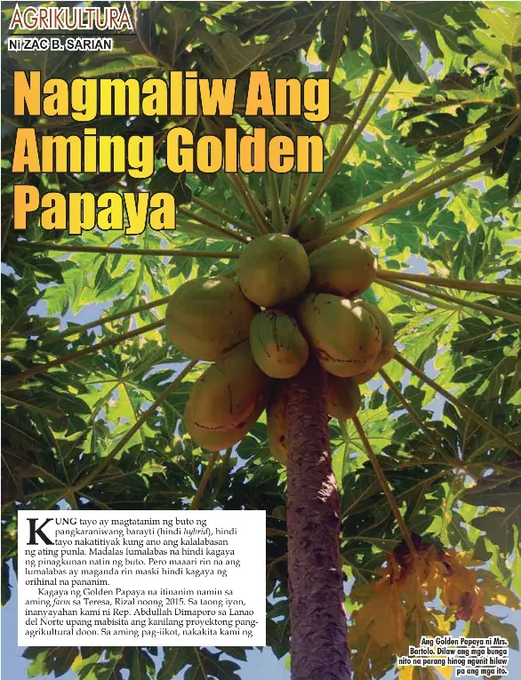 Ang papaya ay isang halaman na katulad ng isang puno ng palma na may mga inukit na dahon. At naroroon nga sa gitna ng bukid ang isang puno na malalapad ang dahon at hitik sa bunga. Health Benefits ng Papaya.